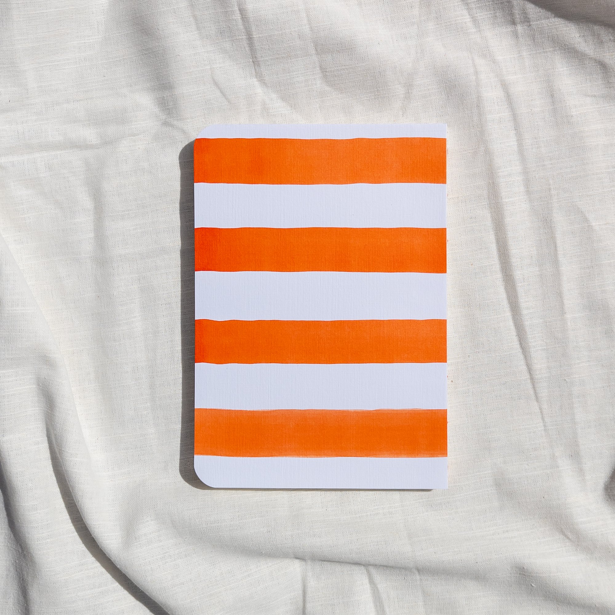 The classic beach striped towel now as a notebook. Hand painted with inks.